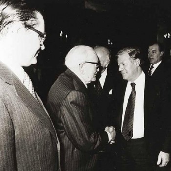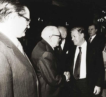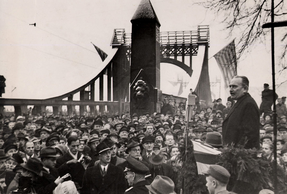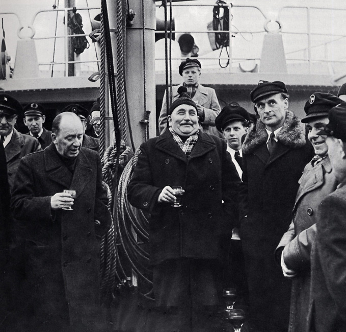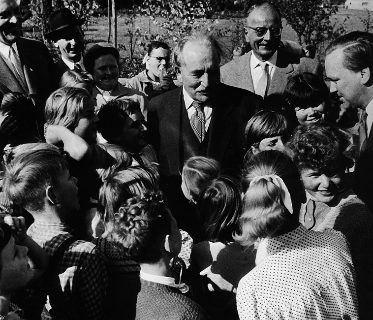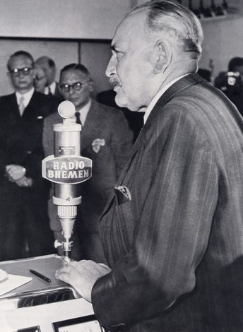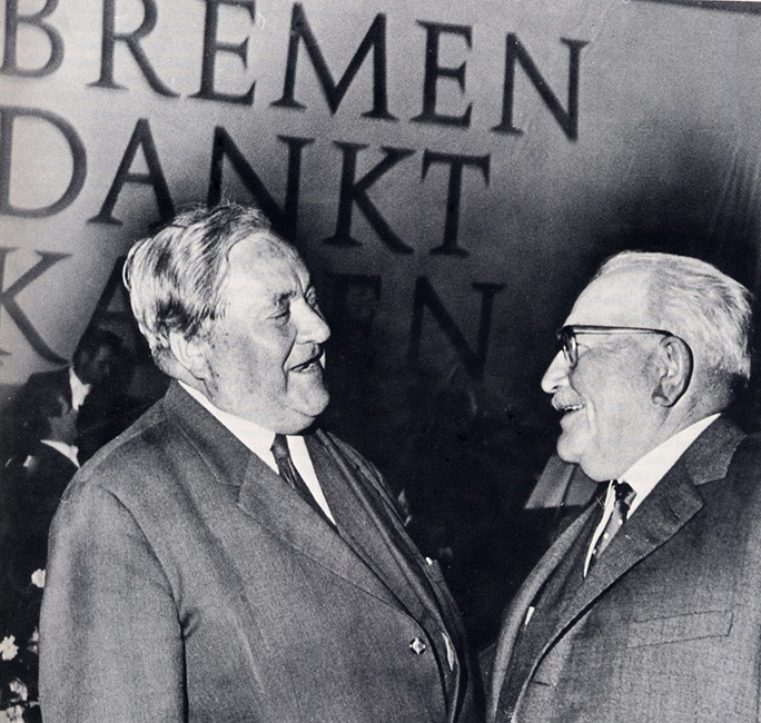 Wilhelm Kaisen mit Eltern und älterem Bruder Friedrich 1889Wilhelm und Helene Kaisen mit den Kindern Niels, Ilse und Franz und einer Haushaltshilfe 1926Weihnachtsansprache auf dem Balkon des Bremer Rathauses 1945Wiedereröffnung der Großen Weserbrücke 1947Mit Andre Francois-Poncet 1950Nach einer DienstreiseWilhelm Kaisen schaltet eine neue Sendeanlage von Radio Bremen ein, Oktober 1951.Bürgermeister Kaisen und Bundespräsident Theodor Heuss in der Wohnküche in Borgfeld 1952Wilhelm Kaisen an Bord des Fischdampfers „Bremen“ der Nordsee, Deutsche Hochseefischerei A.G. in Bremerhaven 1953Schaffermahlzeit 1954: Wilhelm Kaisen, Konrad Adenauer und Theodor Spitta„Vadder“ Kaisen bei der Einweihung eines Kinderspielplatzes 1956Grundsteinlegung „Neue Vahr“ 1957Einweihung der Großen Weserbrücke am 22.12.1960 (heute: Wilhelm Kaisen-Brücke)Mit Carlo Schmidt bei einer Festveranstaltung der SPD für Kaisen 1965Hans Koschnick, Wilhelm Kaisen, Helmut Schmidt 1979Bürgermeister und LandwirtBei der LandarbeitWilhelm Kaisen im Ruhestand 197690. Geburtstag 1977Staatsakt für den verstorbenen Wilhelm Kaisen am 23.12.1979