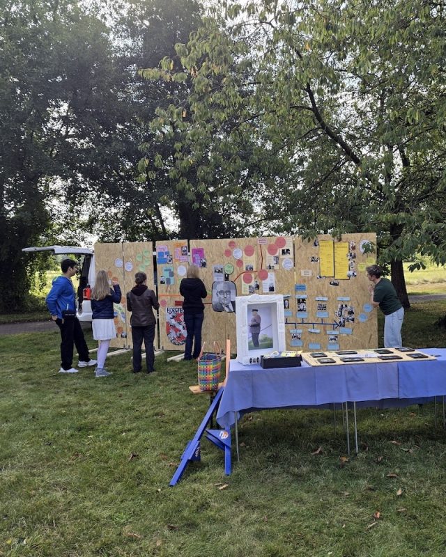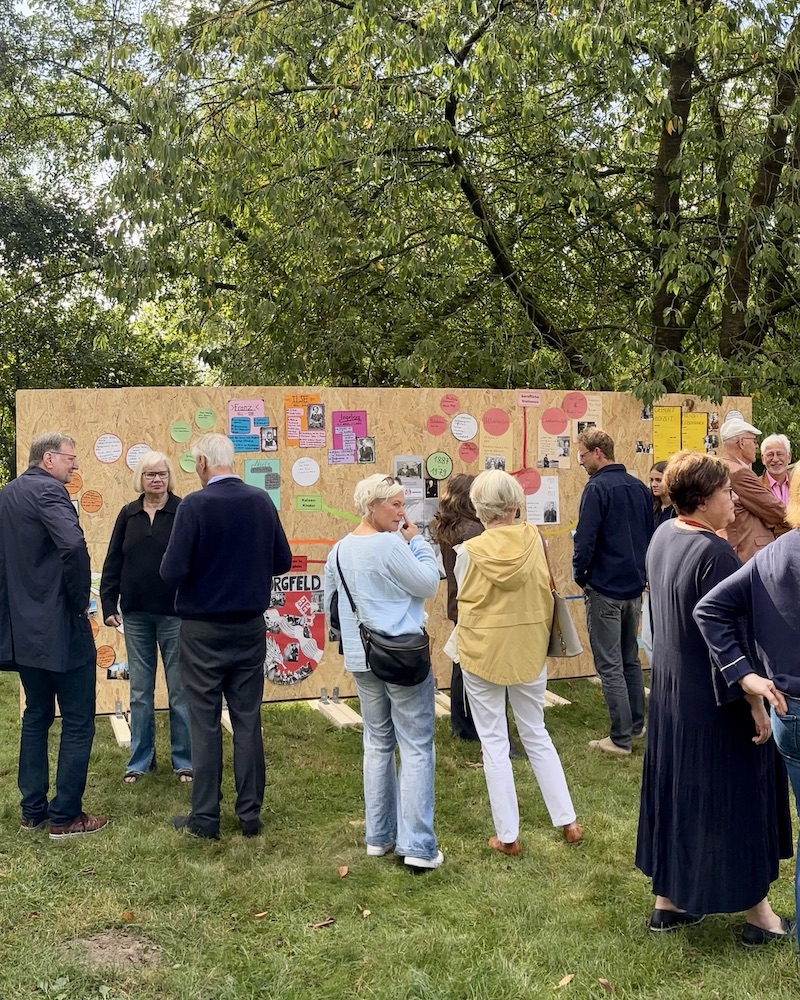 Optisches Highlight war jedoch die großformatige Ideenwand, die Schülerinnen und Schüler der Wilhelm Kaisen-Oberschule zusammen mit ihren Lehrer:innen Frau Semkat und Herrn Webers im Garten aufstellten. Die Jugendlichen der Klasse 10 a beschäftigen sich im Projekt „Moin Bremen“ mit dem Namenspatron ihrer Schule und hatten so Ideenfindung und Recherchen zu verschiedenen Aspekten seiner Vita zusammengetragen. Bereitwillig stellten Emily, Ervjola, Meret, Linnéa und Karen ihre Arbeit den Besucher:innen vor und beantworteten dabei auch Fragen wie „Was ist Kahoot?“. Die kreativen Umsetzungen wie der Nachbau der Siedlerstelle im Modell oder die Herstellung einer eigenen Seife, inspiriert von Wilhelm Kaisens Arbeit als Jugendlicher in einer Seifenfabrik, kamen beim Publikum gut an.