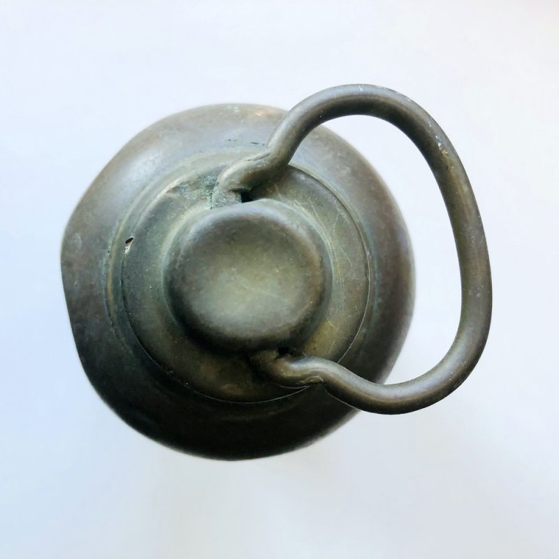 Erst als ich für eine Ausstellung im Atelierhaus Roter Hahn in Gröpelingen über historische Wärmflaschen recherchierte, erinnerte ich mich an die kleine Metallstandflasche vom Fensterbrett in der Kaisen-Waschküche. Es war eindeutig eine Wärm- und keine Trinkflasche, und zwar eine, wie sie um 1900 verbreitet war. (Ab den 1920er-Jahren kamen die elastischen Gummiwärmflaschen auf den Markt, die natürlich viel kostengünstiger und bequemer in der Handhabung waren.) Berührend, dass diese altmodische und unpraktische Messingflasche, die mit Stoff umwickelt wurde, damit sie nicht die Haut verbrannte, die ganzen Jahrzehnte auf der Siedlerstelle überdauert hat. Offensichtlich hat sie hier gute Dienste geleistet: Beulen, Kratzer und Korrosionsspuren zeigen, dass sie oft in Gebrauch war und dabei bestimmt mehr als einmal auf den harten Fußboden fiel.